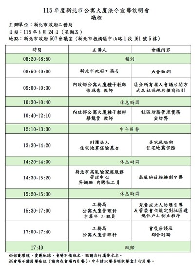 - 115年度新北市公寓大廈法令宣導說明會 開始報名囉!!!!!