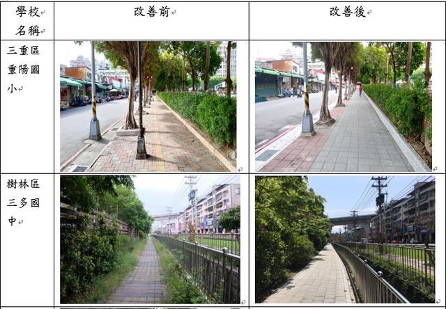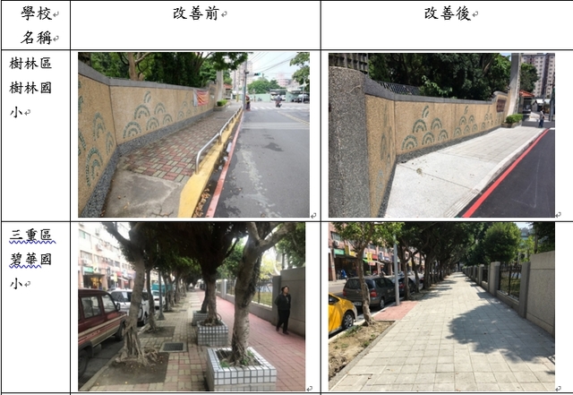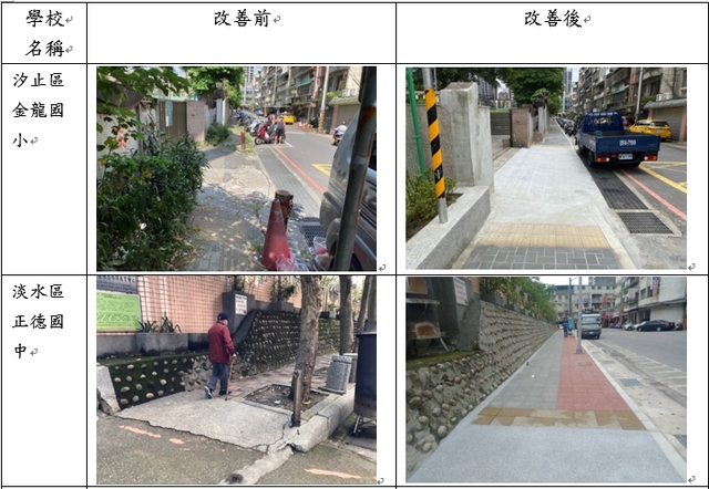 二、推動「安居樂業及婦幼安全」,和學校合作共同改善學校周邊人行空間,提供學童安全、友善、無礙的通學環境,受惠者計有學生約4萬3,313人(男女皆有)、接送者(以女性居多)及周邊居民。